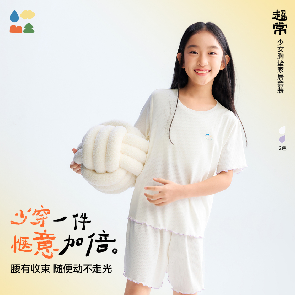 产品名称:森林棠少女带胸垫家居套装 女童夏季睡衣家居服 森氧棉 短袖短裤套装43262386
