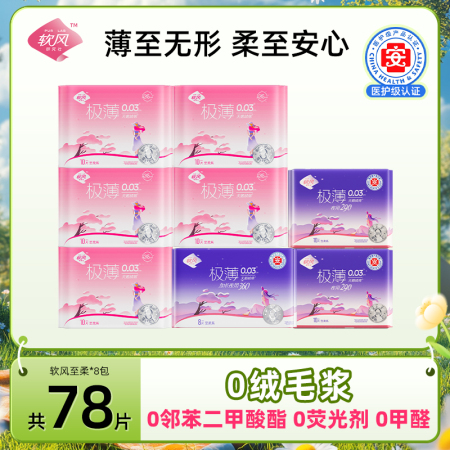 软风研究社至柔系卫生巾 越吸越柔软量大潮涌,亲肤如云细柔如羽,轻轻宠护娇嫩肌肤 有机棉卫生巾 医护级姨妈巾 防漏卫生巾 日夜组合卫生巾 纯棉姨妈巾