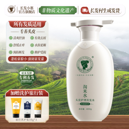 【双11特惠】【特证防脱】长发小寨淘米水防脱强韧控油去屑洗发水400ml,蓬松生姜防掉发短发男女通用洗发水,红瑶古法,专利防脱固发,调节头皮菌群,维稳头皮生态 长发小寨防脱洗发水 蓬松洗发水 控油洗发水 去屑洗发水 稻米防掉发男女通用