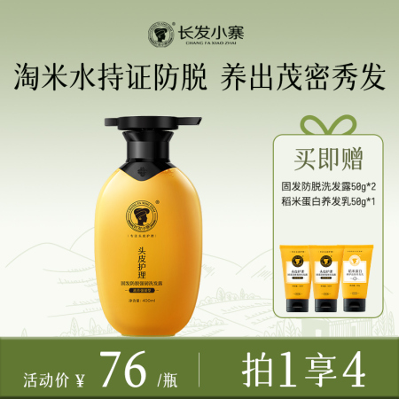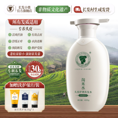 【双11特惠】【针对大油头】长发小寨淘米水头皮护理控油蓬松洗发水400g*1+旅行装50g*3,8种草本植萃,平衡水油,强壮发根,3大有益菌平衡头皮菌群 长发小寨控油蓬松洗发水 控油洗发露 淘米水洗发膏