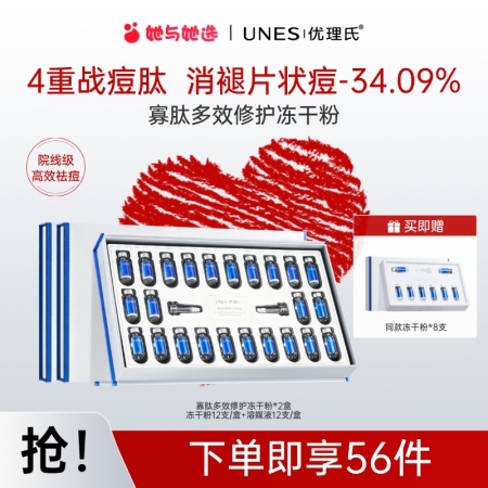【拍1到手2盒,,再送同款冻干粉4对*1盒】优理氏寡肽多效修护冻干粉12对装*2盒,10min祛痘+淡印,急速修护痘敏肌,呵护痘敏肌清透易吸收,独立封存冻干粉,维持高活性 优理氏寡肽多效修护冻干粉 修护冻干粉