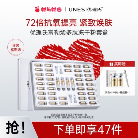 优理氏富勒烯多肽冻干粉套盒44支,富勒烯冻龄配方,御氧淡纹,重塑弹嫩亮,3维冻龄配方,击退黯黄,隐匿细纹 优理氏富勒烯多肽冻干粉套盒 熬夜提亮必备 多肽冻干粉套盒