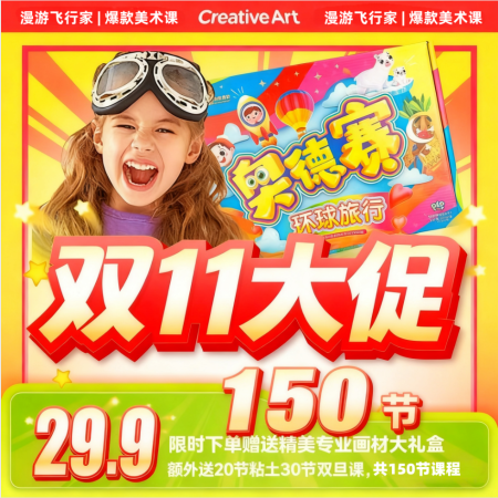 【💥史上zui低价!,限量298套,双11加赠课程50节】飞行家-奥德赛环球旅行,100节多样系统艺术课,十大板块,通过绘画及生活材料的运用等方式构建引导孩子认知世界,提高孩子的认知能力,多视角探索事物的能力