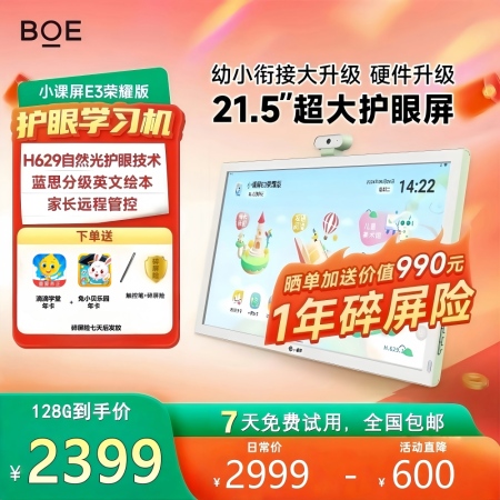 【春节不打烊🧧 🧧】【限量赠蓝牙键盘】京东方小课屏E3荣耀版(128G)焕新升级护眼大屏新体验!21.5英寸大屏,H629自然光屏,前麦降噪,音响清晰,牛津、多纳外教课程 黄冈清北名师授课 京东方平板 学习平板 学习机