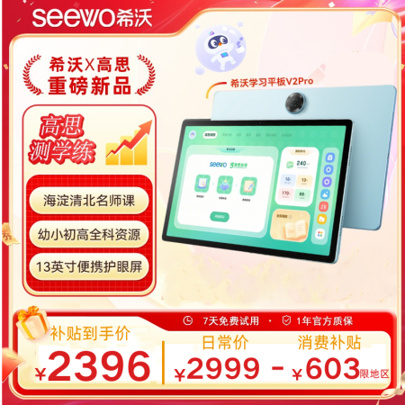希沃护眼学习平板V2Pro(6+256G),希沃x高思重磅首发,分层学练新标杆,校内校外双提升,幼小初高全科资源,13英寸便携护眼屏 希沃护眼学习平板V2Pro 希沃V2Pro平板 希沃学习平板 希沃护眼学习机 希沃电子教育 希沃学生平板
