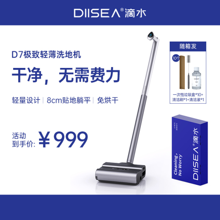 DIISEA/滴水D7轻薄洗地机,干净,无需费力 轻量设计|8cm贴地躺平|免烘干,新材料不用烘+亲新技术不用吸 DIISEA滴水D7轻薄洗地机 滴水洗地机 智能扫地机 家用便捷清洁神器 滴水清洁工具