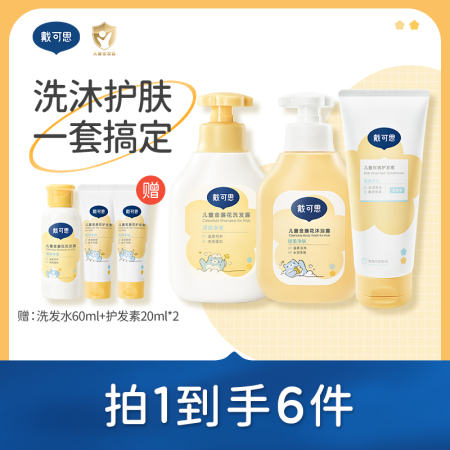 【到手6件】戴可思洗护组合:350ml洗发露+350ml沐浴露+护发素200g+赠洗发水60ml+护发20g*2,全家适用,温和无刺激,深层清洁、保湿滋养。柔顺修复 洗发沐浴必备 戴可思洗发水 戴可思沐浴露戴可思护肤霜